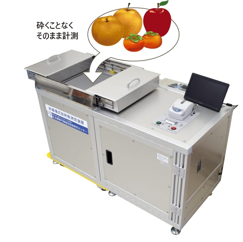 非破壊放射能測定装置は、食品に含まれる放射能を非破壊で測定するというコンセプトで開発されました。一般食品に対して20Bq/㎏(基準値の1/4)以下を5分で測定できます。